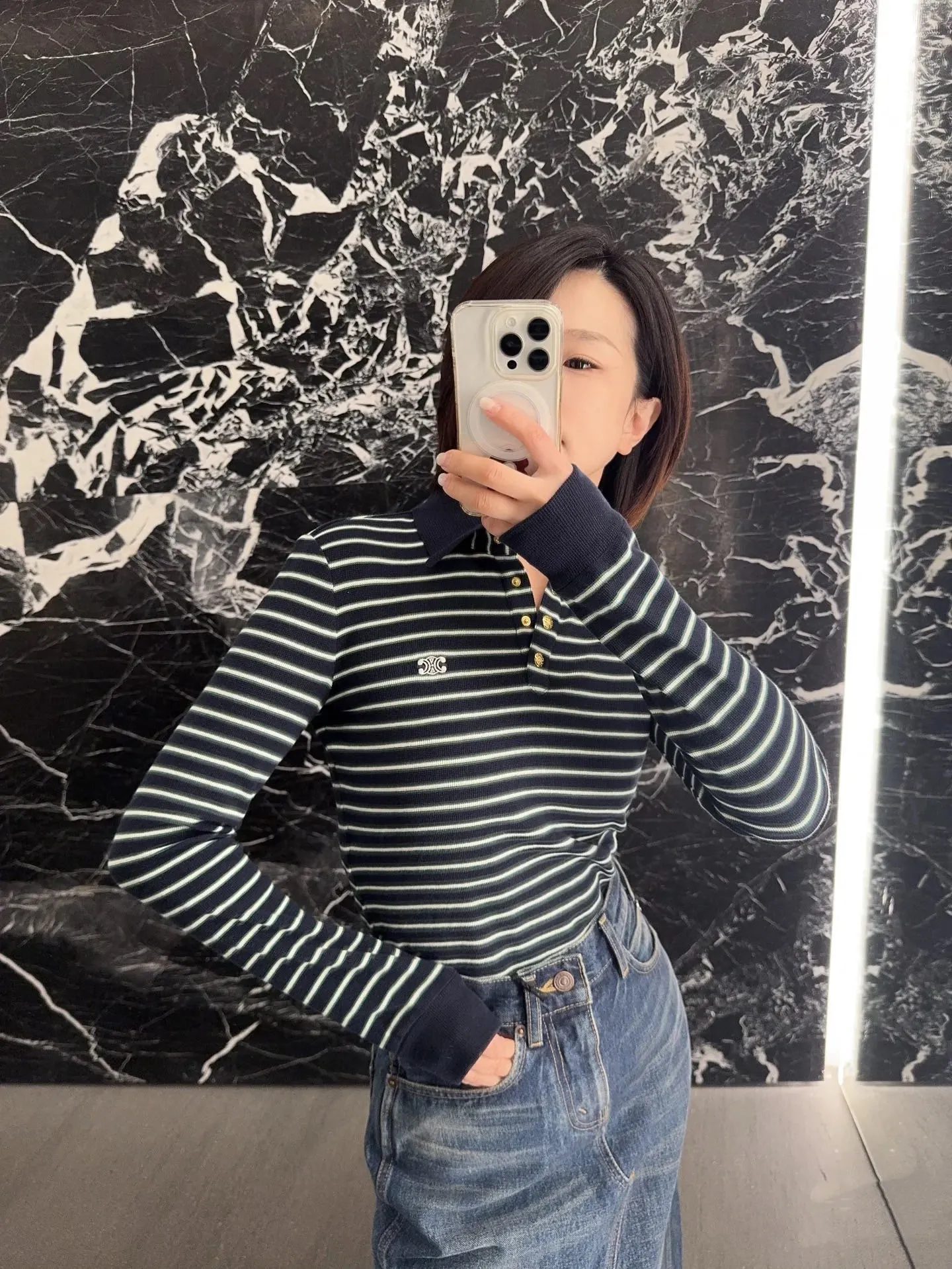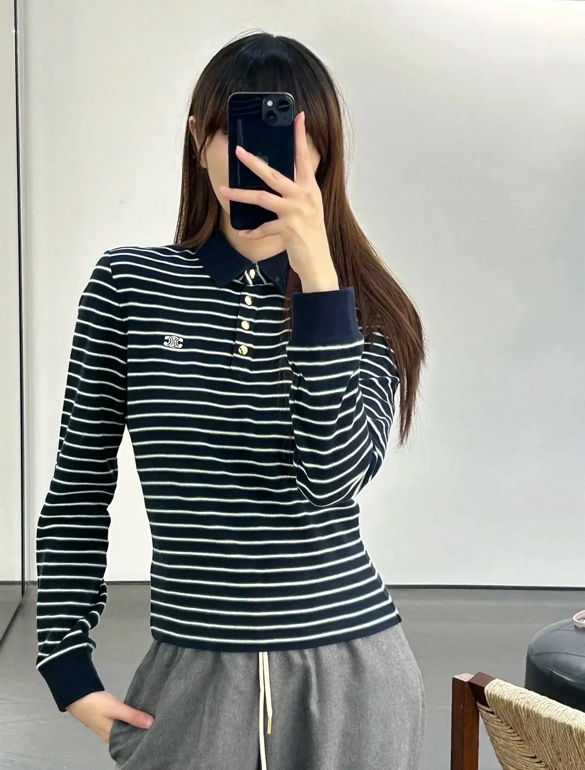 [1:1 제작 복원급] 셀린느 스트라이프 롱슬리브 폴로티