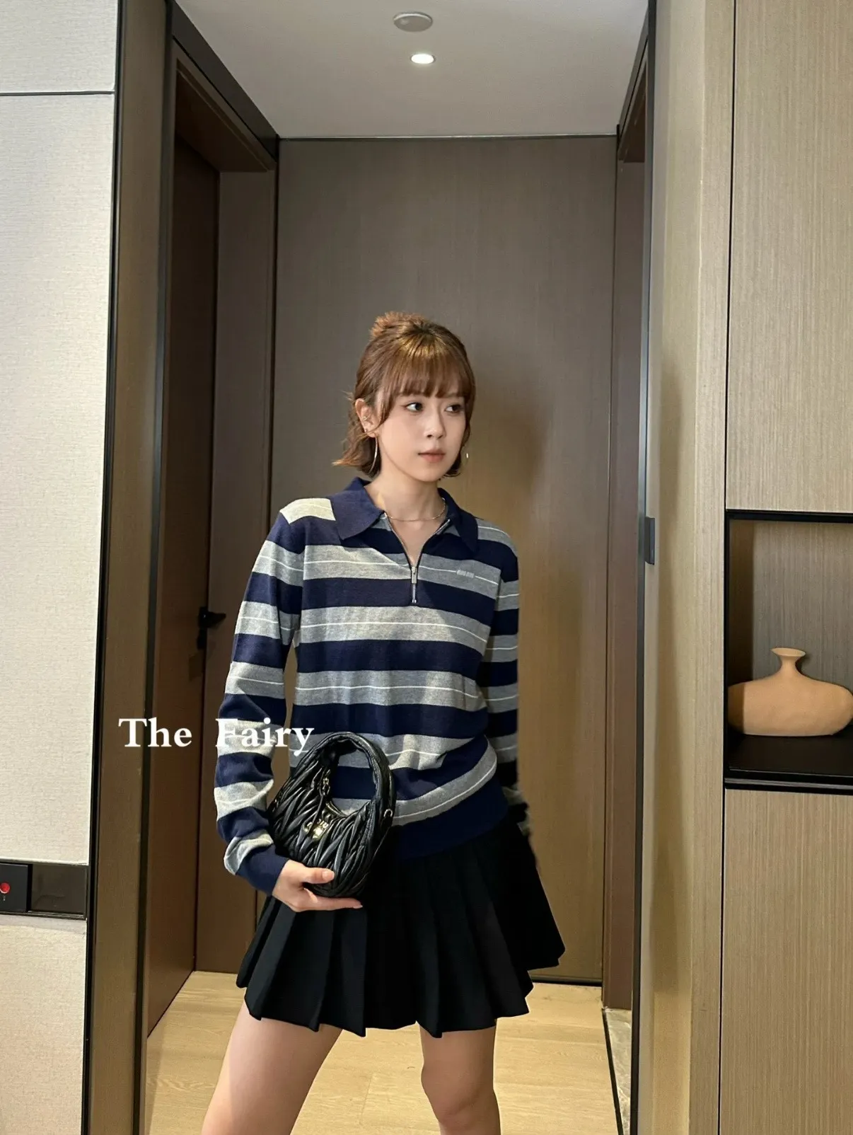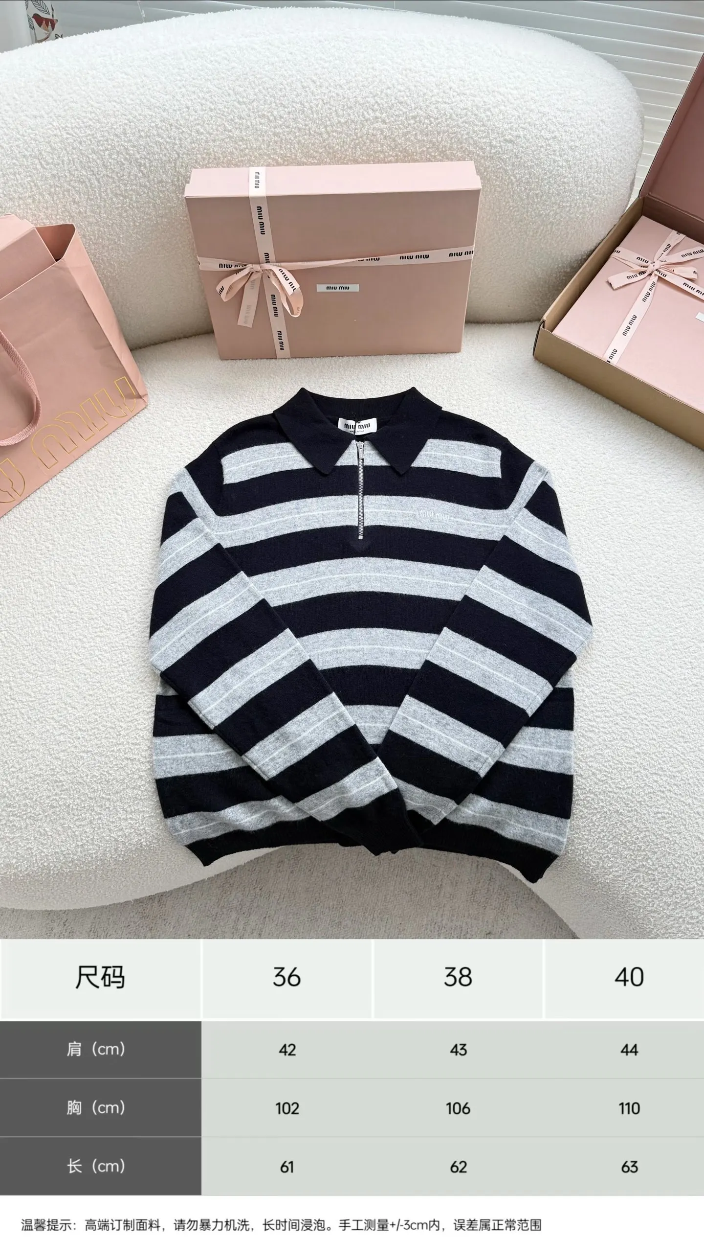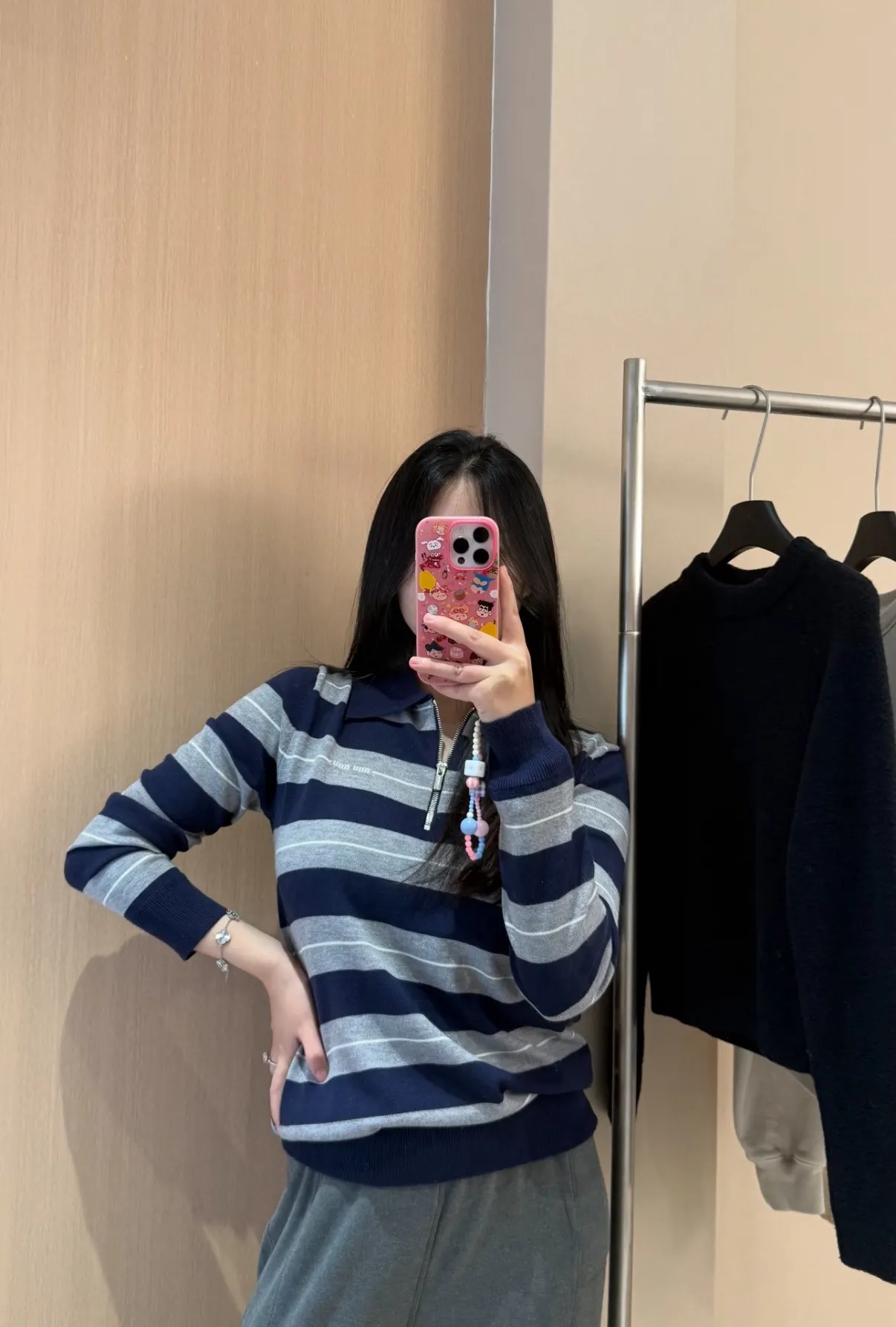 [1:1 제작 복원급] 미우미우 스트라이프 집업 폴로셔츠
