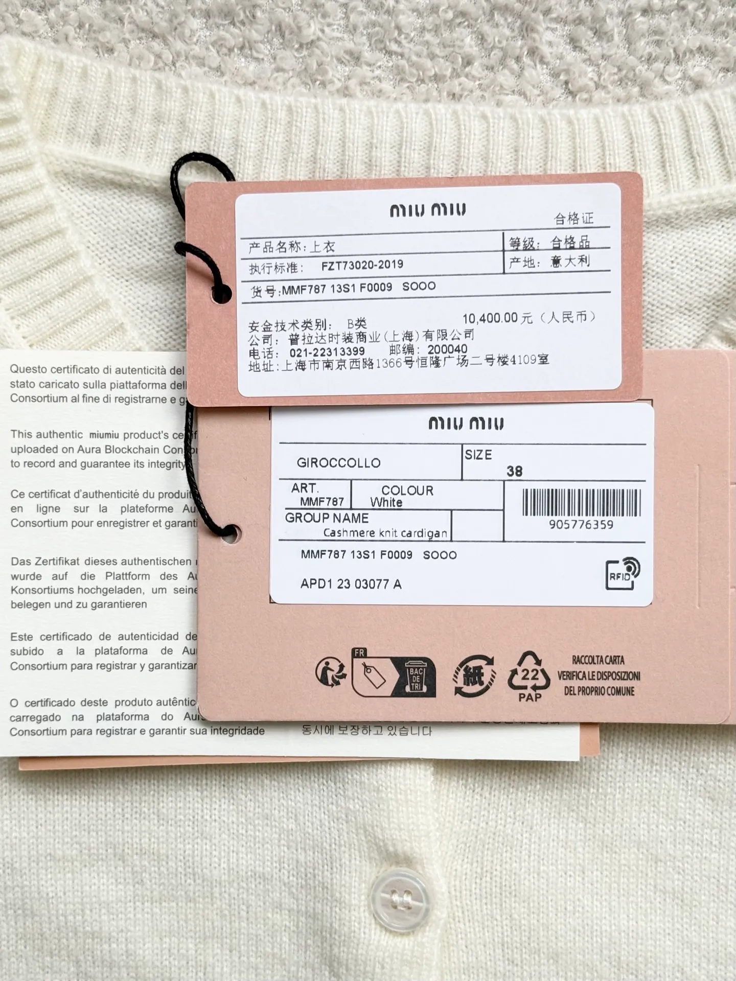 [1:1 제작 복원급] 미우미우 라운드넥 가디건