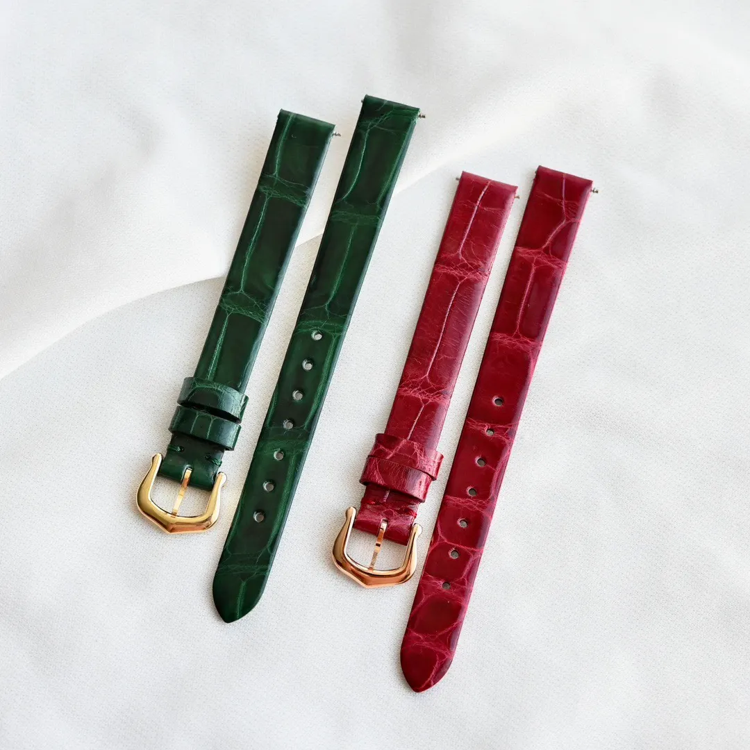 약 0.5캐럿 스테인리스 스틸+ 18k 도금 초록/빨강 악어가죽 스트랩