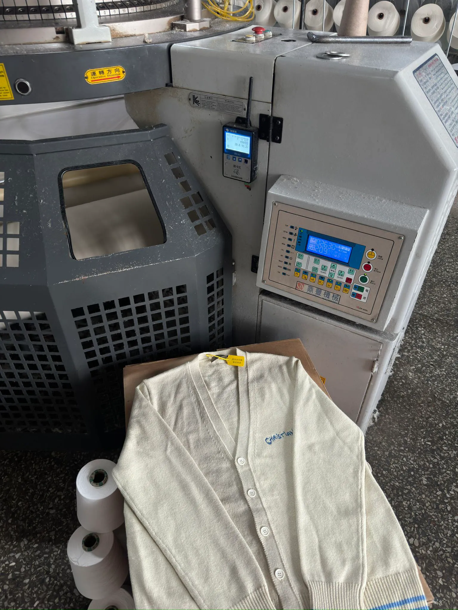 메리노 울 니트 원사 자수 로고 디테일 리브드 트리밍 커스텀 자개 단추